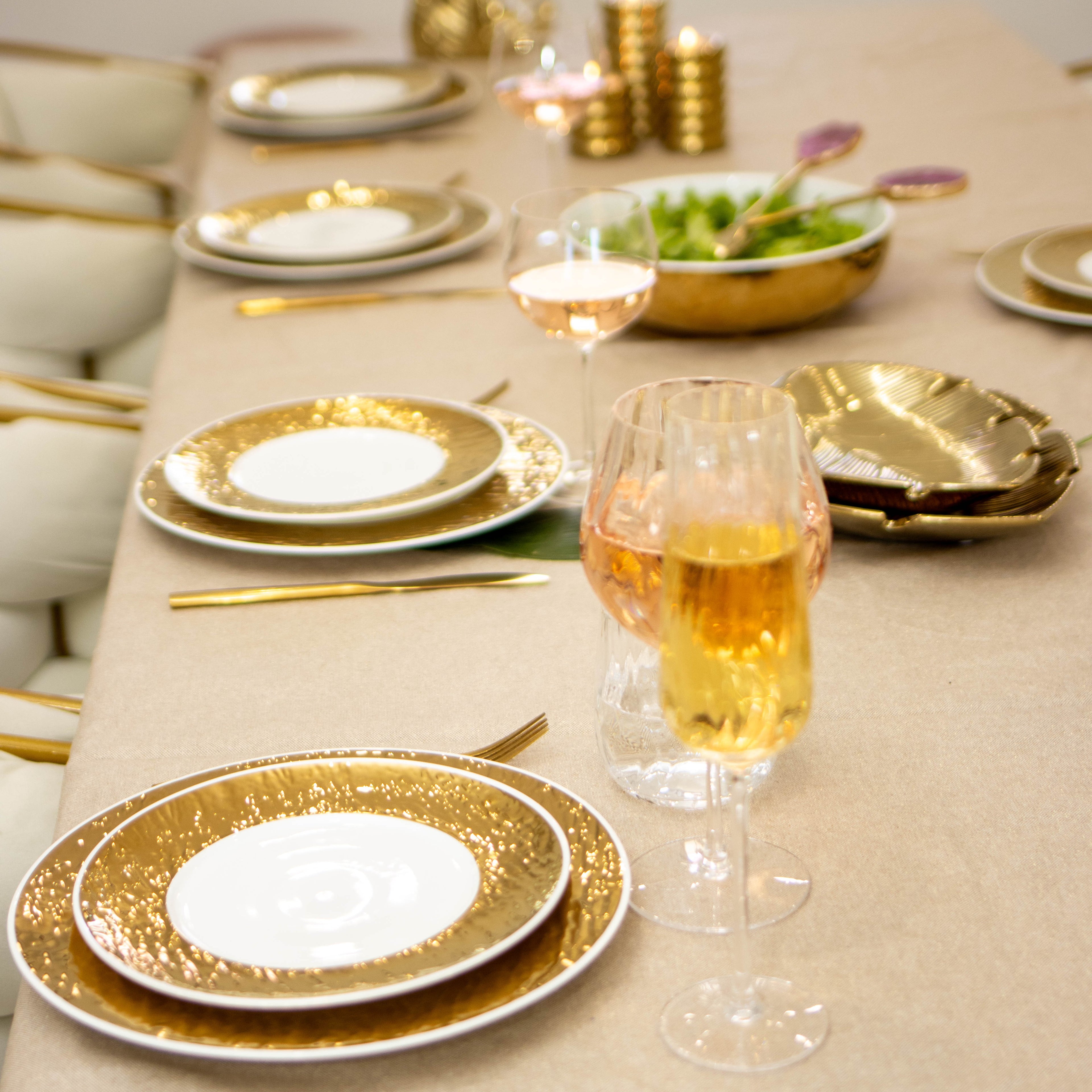 Lot de 6 Assiettes plate blanche et dorée 27cm Lot de 6 Assiettes plate blanche et dorée 27cm